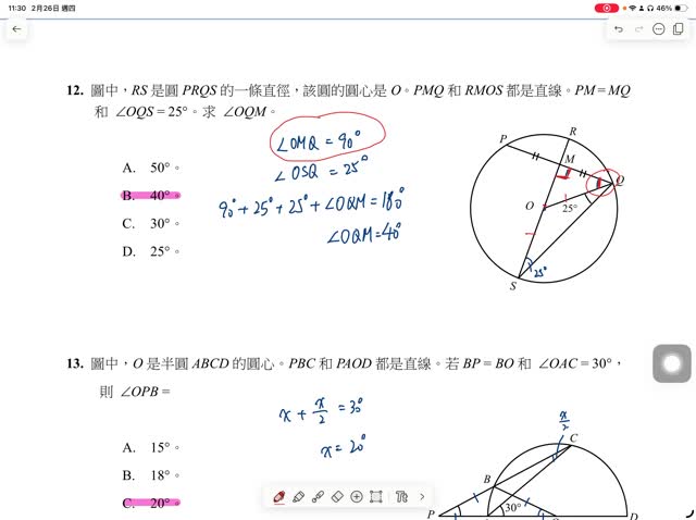24-25 數學第二學期考試 卷二 Q9-14