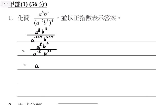 2024-25 數學科 中五第一學期考試 卷一 Q1